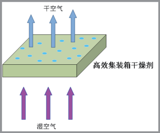 物流业或产品制造商一般采用的解决方案为20英尺的集装使用16千克的干燥剂,40英尺的集装箱使用32千克的干燥剂(在25℃、RH=80%的条件下的吸湿率为35%)。因使用干燥剂仅吸收气态水,目前该方案无法解决和避免因集装箱雾雨所导致的商品湿损。