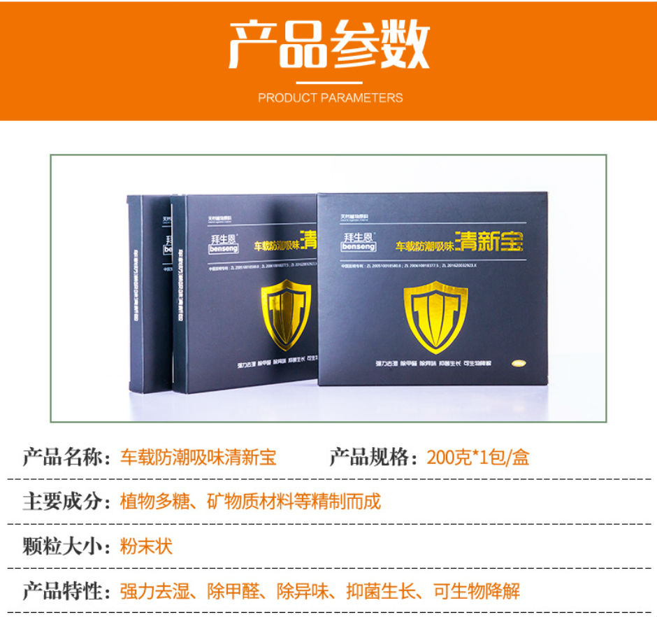 购买此产品请在淘宝天猫搜索:拜生恩车载防潮吸味清新宝