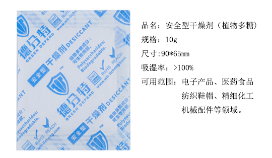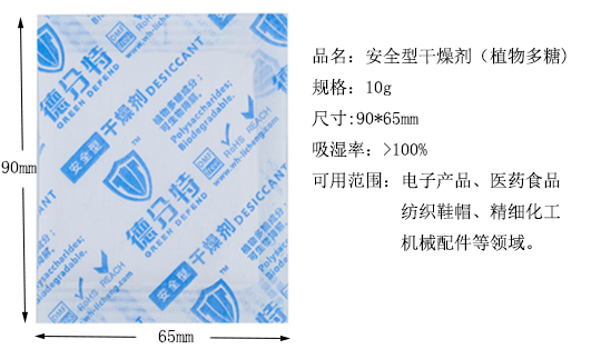 安全型干燥剂外观为浅淡黄色细小颗粒,是以天然植物多糖为主要原料制成的,具有优良的吸湿保水性能。