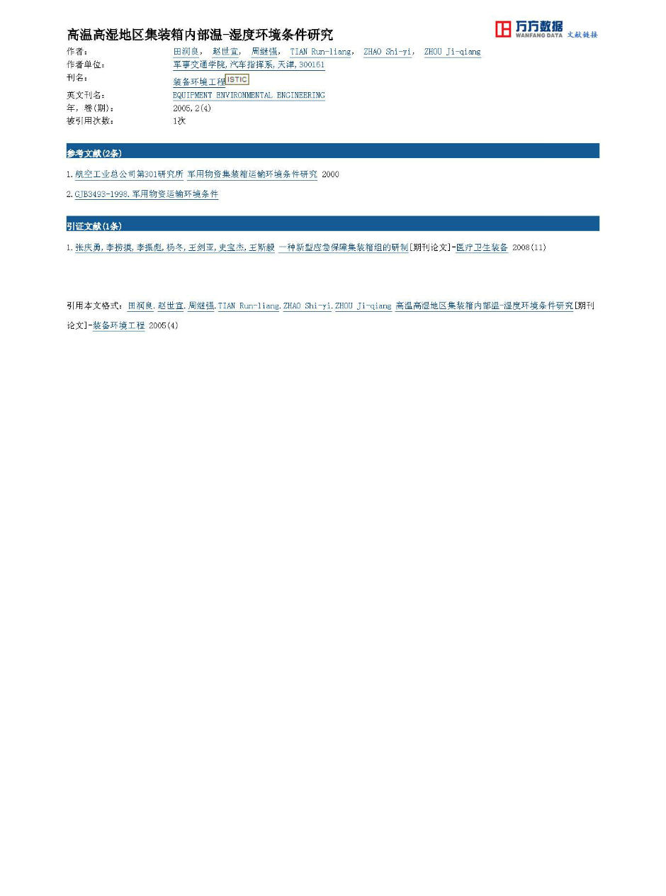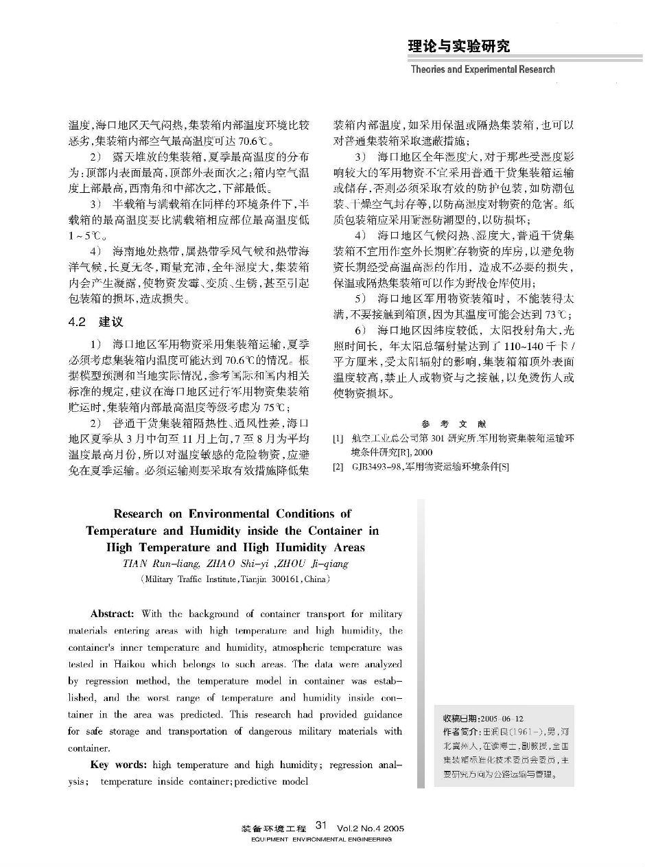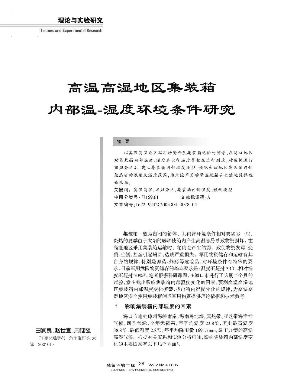 高温高湿地区集装箱内部温-湿度环境条件研究
