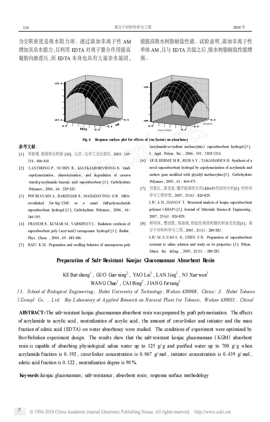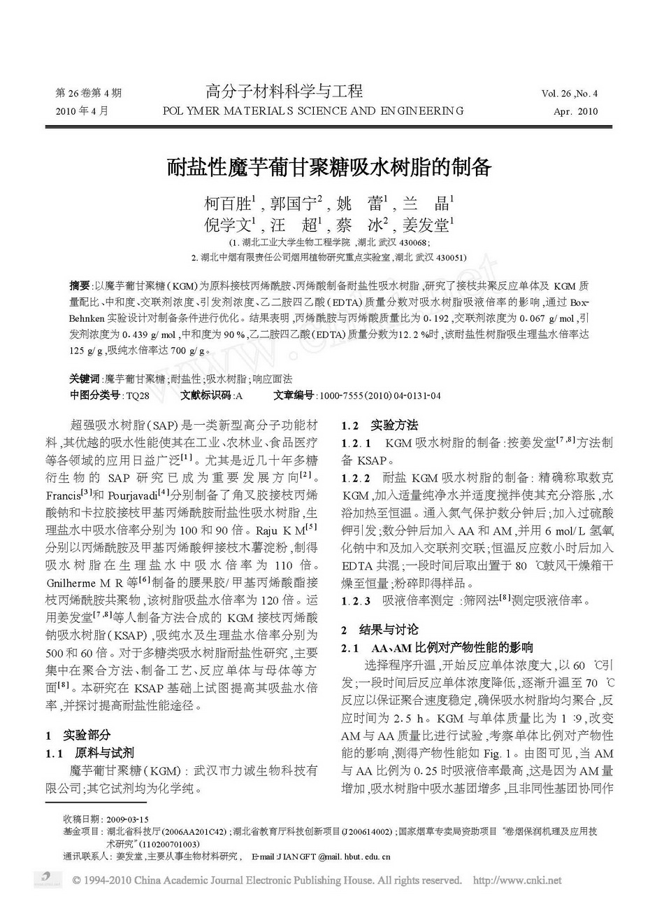 高分子材料科学与工程-耐盐性魔芋葡甘聚糖吸水树脂的制备