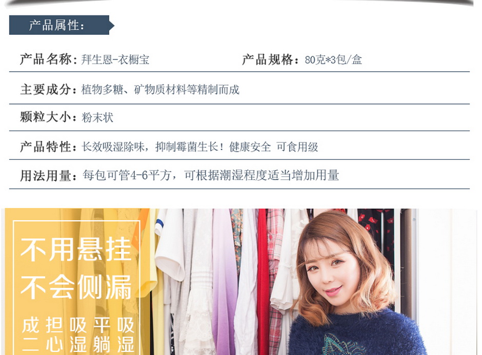 衣橱防潮剂,衣橱吸湿袋,本产品天猫购买搜索:拜生恩衣橱宝