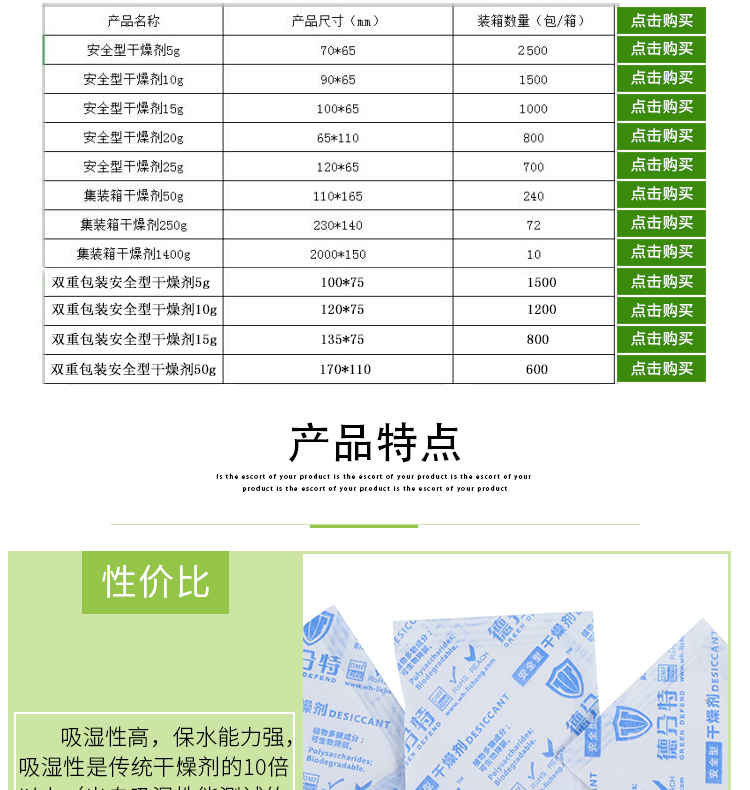 公司新推出120型安全干燥剂5克、10克、15克、50克系列,内外袋双重包装,深度锁水除湿防潮,欢迎新老客户联系垂询!