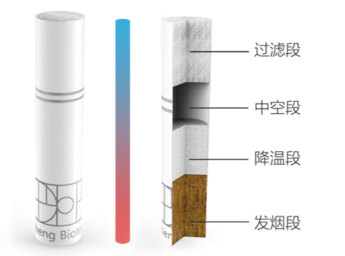 本产品采用植物多糖-魔芋葡甘聚糖为核心材料,辅以天然生物质通过溶胶-凝胶、真空冷冻干燥的方法一次成型制备而得,可用于HNB电子烟烟弹的过滤段、降温段和发烟段部件。